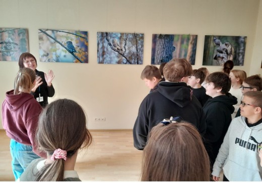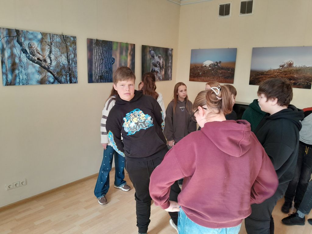 Po edukacijos mokiniai taip pat turėjo galimybę apžiūrėti bibliotekoje eksponuojamą Kęstučio Čepėno fotografijų parodą „Raiba tyla“. Paroda kviečia gėrėtis paslaptingais nakties paukščiais – nuo mažiausios žvirblinės pelėdos iki didžiojo apuoko.