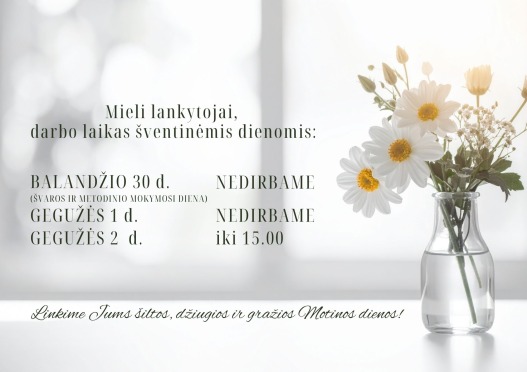 Balandžio 30 d. – nedirbame. Bibliotekoje vyks švaros ir metodinio mokymosi diena.
