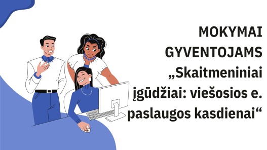 Mokymai gyventojams „Skaitmeniniai įgūdžiai: viešosios e. paslaugos kasdienai“. Projekto „Prisijungusi Lietuva: skaitmeninių įgūdžių tobulinimas“ veikla