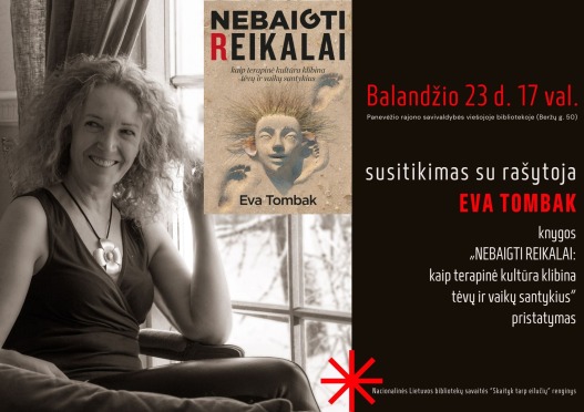 Susitikimas su rašytoja E. Tombak ir knygos „Nebaigti reikalai: kaip terapinė kultūra klibina tėvų ir vaikų santykius” pristatymas